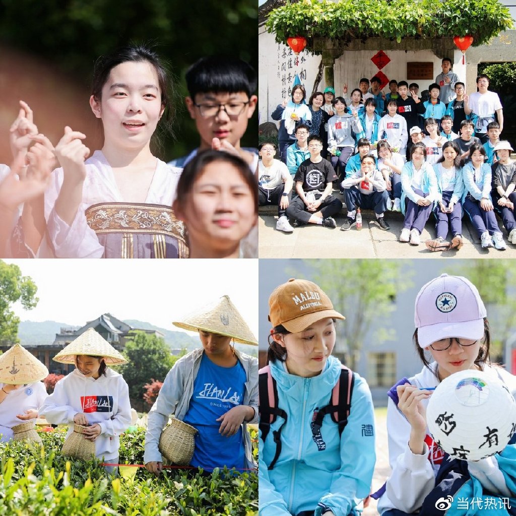 八年级同学在画外桐坞以“茶颜运色 籣华宋韵”为主题,传承红色精神,丰收喜悦,体验劳动乐趣;解码数智农业,开启互联之门。本次新劳动教育研学实践更是与乡村振兴、共同富裕同频共振,现场中国手舞第一人,全国青联正能量的“小一姐姐”以视频方式希望杭州市建兰中学同学们“立少年之志,成君子大气”为“诗画江南、活力浙江、共富中国”贡献青春力量。